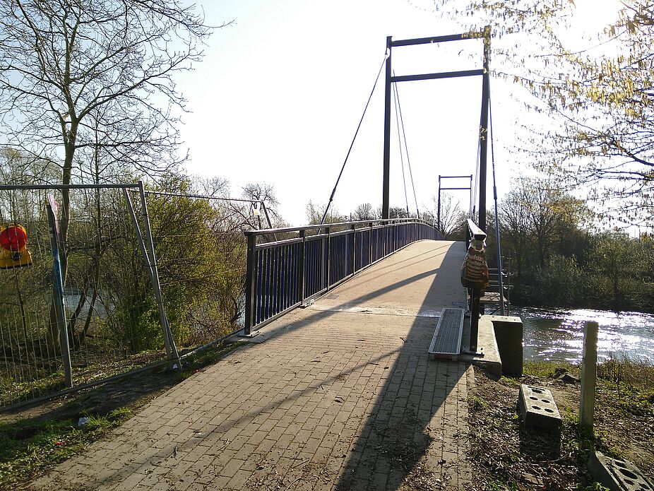 Die wichtige Kurzverbindung zwischen Seelze und Hannover war jahrelang gekappt und hat Fußgänger*innen und Radfahrer*innen zu weiten Umwegen genötigt. Nun wurde sie endlich fertiggestellt und wieder freigegeben. Während sie von der einen Seite problemlos befahren werden kann ist auf der Seelzer Seite zur Uferstraße ein Drängelgitter montiert, da die Brückenabfahrt direkt an der Uferstraße endet.